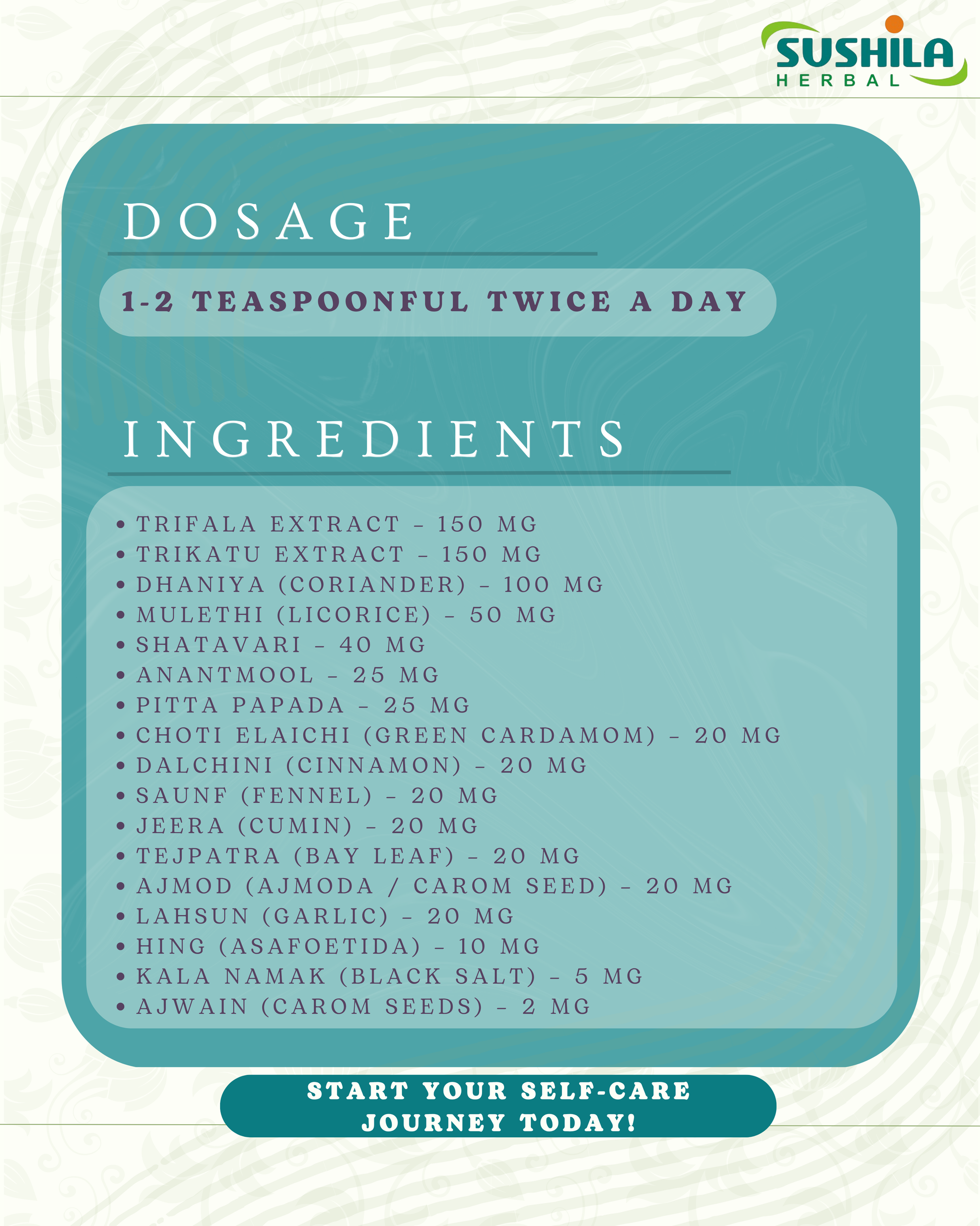 A powerful herbal digestive tonic that provides relief from common digestive issues such as acidity, bloating, and indigestion. This Ayurvedic formulation works by stimulating digestive enzymes, enhancing nutrient absorption, and promoting a healthy gut flora. It is particularly beneficial for individuals suffering from acid reflux, flatulence, and sluggish digestion. Amrit Zyme not only helps in breaking down food more efficiently but also aids in reducing stomach discomfort, improving appetite, and preventing constipation. Ideal for daily use, this tonic supports a well-balanced digestive system and promotes long-term gut health.