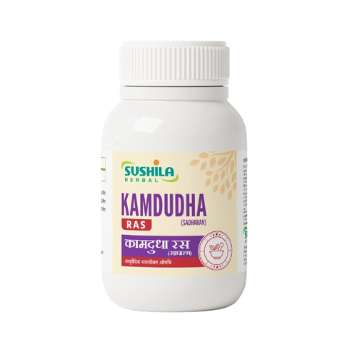 Kamdudha Ras is an Ayurvedic medicine primarily used to balance excess heat in the body. It helps treat acidity, gastritis, bleeding disorders, and related digestive issues. Made with cooling ingredients like Mukta (Pearl) and Shankha Bhasma, it promotes calmness, soothes the stomach, and supports pitta-related imbalances.