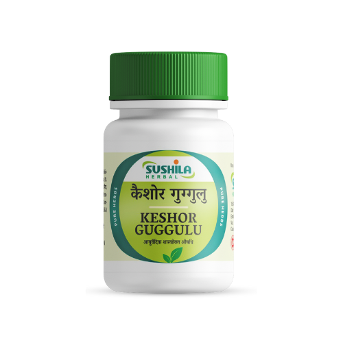 A time-tested classical Ayurvedic formulation, Keshor Guggulu is known for its powerful anti-inflammatory, wound-healing, and skin-rejuvenating properties. This herbal blend is widely used in treating various skin conditions such as acne, eczema, and psoriasis, helping to purify the blood and detoxify the body. It aids in reducing swelling, redness, and irritation while promoting the natural healing process of wounds, boils, and ulcers. Additionally, it strengthens the immune system, making the body more resilient against infections and chronic inflammatory conditions. Regular consumption supports overall skin health, enhances complexion, and helps manage chronic skin disorders effectively.