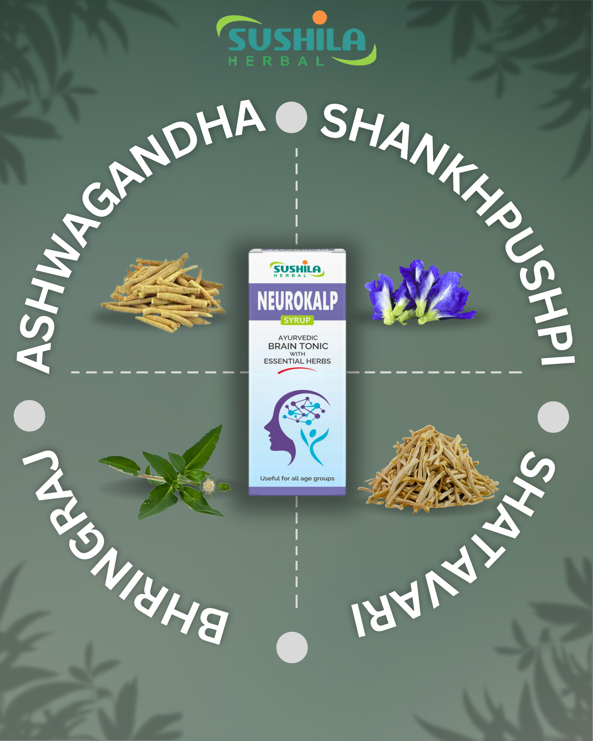 A nerve-strengthening Ayurvedic tonic that helps in managing stress, anxiety, and neurological disorders. It is formulated with powerful neuroprotective herbs that support brain function, enhance memory, and improve cognitive abilities. Neurokalp helps in calming the nervous system, reducing symptoms of nervousness, and improving focus and concentration. It is highly beneficial for individuals suffering from anxiety, depression, nerve weakness, and age-related cognitive decline. Additionally, it aids in improving sleep quality, reducing headaches, and promoting mental relaxation. Regular use can enhance brain function, support emotional well-being, and provide a natural way to manage stress effectively.